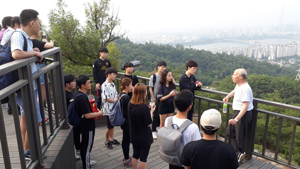 오전 7시 서울 광진구 아차산 생태공원에서 출발해 산 정상을 다녀오는 2시간의 산행 동안 학생들과 콘버그 교수는 다양한 주제의 대화를 나눴다.