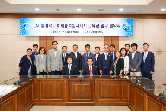 남서울대와 세종교육청은 15일 남서울대 국제회의실에서 미래 인재 양성을 위한 상호 협력에 대한 업무 협약을 체결했다.