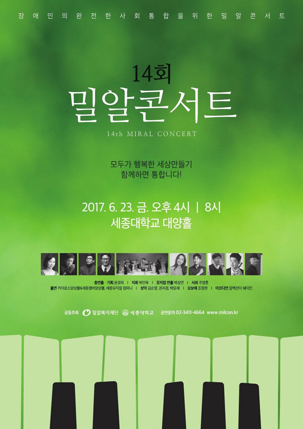 [대학저널 신효송 기자] 세종대학교(총장 신 구)와 (사)밀알복지재단(이사장 홍정길, 상임대표 정형석)이 오는 23일 오후 4시와 8시 세종대 대양홀에서 제14회 밀알콘서트를 개최한다.
