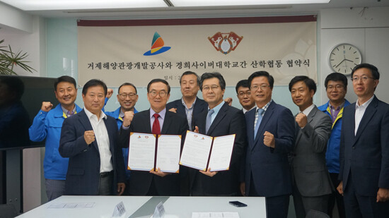 이번 협약식에는 경희사이버대 부총장 윤병국 교수, 기획협력처장 임근욱 교수와 거제해양관광개발공사 김경택 사장과 자문위원 진현식 회장 등 양 기관 관계자들이 참석했다.