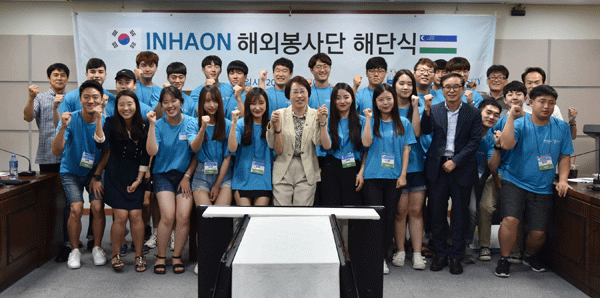 [대학저널 신효송 기자] 인하대학교(총장 최순자)가 지난 5일 인하대 해외봉사단 '인하온'의 해단식을 가졌다. 봉사단은 지난 6월 18일부터 26일까지 우즈베키스탄 수도 타슈켄트로 봉사활동을 다녀왔다.