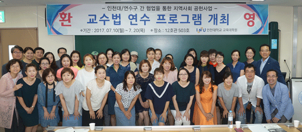 [대학저널 신효송 기자] 인천대학교(총장 조동성) 교육대학원(원장 이시자)은 인천광역시 연수구청(청장 이재호)과 공동으로 지난 10일부터 20일까지 인천대 송도캠퍼스에서 연수구 '수레바퀴 꿈교실' 등에 참여하고 있는 지역주민을 대상으로 교수법 연수 프로그램을 개최했다.