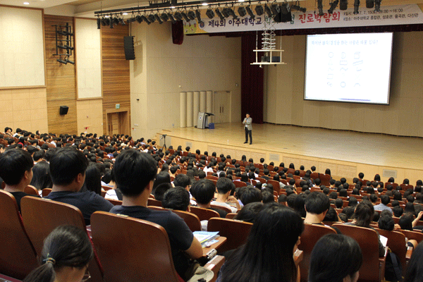 이날 행사는 △김경일 입학사정센터장(아주대 심리학과 교수)의 진로특강을 시작으로 △학과강의 △학과체험 △소학회체험 △전형설명 △자기소개서작성특강 △1대1 상담 △토크콘서트 순으로 진행됐다. 학과강의 시간에는 30개 학과 교수들이 직접 강사로 나섰다. 교수들은 학과에 대한 소개는 물론 중·고교생들의 궁금증을 해결에도 적극 나섰다. 특히 교수들의 질의응답 시간에 대한 학생들의 만족도가 높았다.