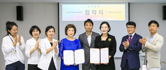 경희사이버대는 동대문구다문화가족지원센터와 지난 26일 동대문구다문화가족지원센터 다사랑행복센터에서 결혼이민자 등 다문화가족 및 외국인주민의 학력신장과 교육복지 확대를 위한 협약을 체결했다.
