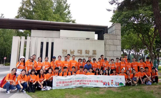 전남대는 중국 온주시 제14고급중학교 학생과 학부모, 교사 등 50여 명을 초청, 지난 7월 20일부터 25일까지 5박 6일 일정의 '여름캠프'를 개최했다.