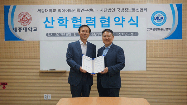 행사에는 세종대 인공지능-빅데이터연구센터 유성준 센터장, 국방정보통신협회 김한욱 R&D 센터장 등 양 기관 관계자가 참석했다.