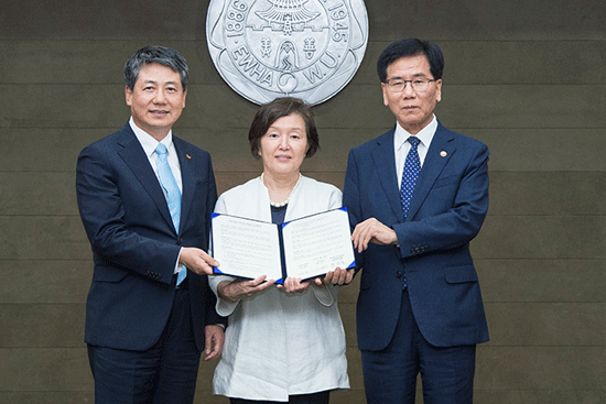 이화여대는 SK행복나눔재단, SK수펙스추구협의회, 고용노동부와 지난 10일 교내 본관에서 사회적 경제 전문인력 양성을 위한 협약식을 개최했다. 이날 협약식에는 김혜숙 이화여대 총장, 김용갑 SK행복나눔재단 총괄본부장, 최광철 SK수펙스추구협의회 사회공헌위원장, 이성기 고용노동부 차관 등이 참석했다.