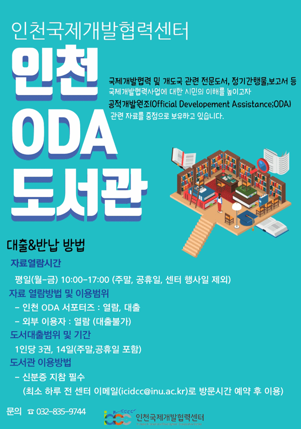 [대학저널 신효송 기자] 인천대학교(총장 조동성) 인천국제개발협력센터가 최근 시민들의 국제개발협력에 대한 이해와 관심을 높이고자 센터 내 '인천 공적개발원조(ODA) 도서관'을 개관했다.