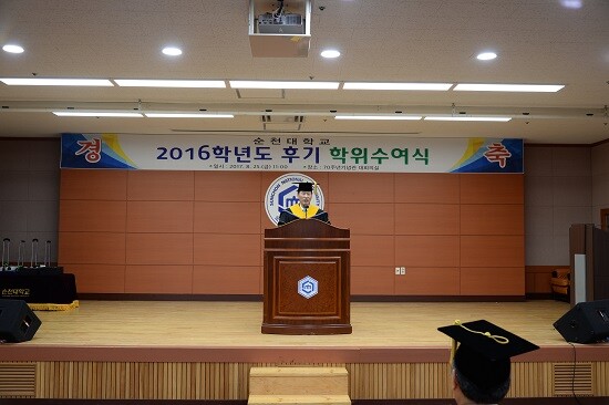 [대학저널 이희재 기자] 순천대학교(총장 박진성)가 지난 25일 오전 11시 70주년기념관에서 '2016학년도 후기 학위수여식'을 열었다.