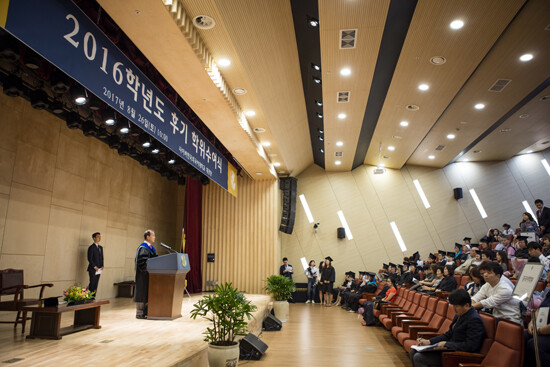 축사에 이어 학위 및 상장 수여식이 진행됐다. 졸업생들은 단상으로 올라가 소속 학부 교수와 뜨거운 악수를 하며 사제 간 정을 나눴다. 발 디딜 틈 없이 대강당을 채운 졸업생의 가족과 친구 등 지인들은 아낌없는 박수를 보냈다.
