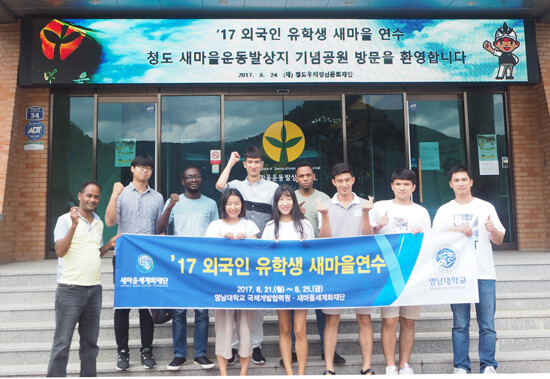 [대학저널 유제민 기자] 영남대학교(총장 서길수)는 지난 21일부터 25일까지 영남대에 재학 중인 외국인 유학생을 대상으로 새마을운동 연수를 실시했다. 새마을세계화재단 지원으로 시행된 이번 프로그램은 개도국 차세대 리더에게 새마을 세계화 운동의 의미와 경제발전의 가치를 전파하고, 향후 새마을 세계화 사업의 성공적인 운영을 위한 지역 전문가 발굴을 위해 마련됐다.