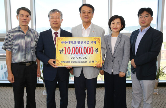 김 교수는 "공주대가 지역과 국가를 대표하는 브랜드 대학으로 거듭 나아가는 데 보탬이 됐으면 한다"며 "제자들이 경제적 어려움 없이 학업에 전념할 수 있도록 조금이나마 도움이 되기를 바란다"고 말했다.