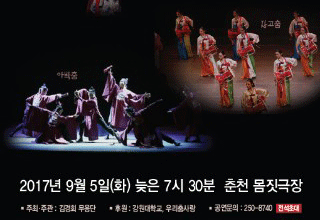 한편 전석 무료관람으로 진행되는 이번 공연에 관한 자세한 사항은 문화예술대학 무용학과(전화 033-250-8740)로 문의하면 된다.