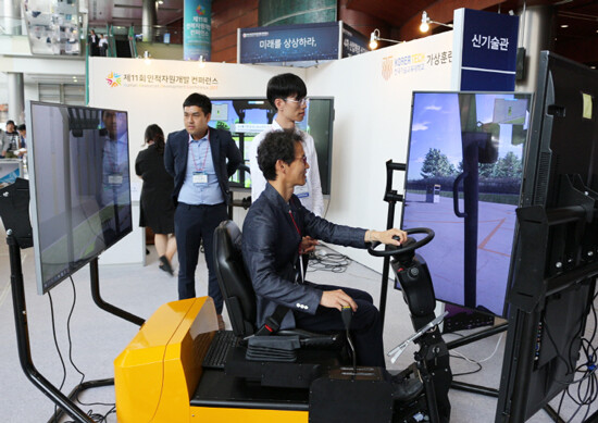 [대학저널 유제민 기자] 코리아텍(한국기술교육대학교, 총장 김기영) 온라인평생교육원은 7일 서울 코엑스 그랜드볼룸에서 열린 '제11회 인적자원개발 컨퍼런스'에서 신기술관 내에 가상현실 체험관 부스를 설치, 이성기 고용노동부 차관을 비롯한 일반 방문객들에게 가상현실(VR) 기반 훈련 콘텐츠를 시연했다.