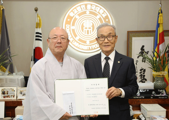이사장 자광스님은 “귀중한 정재를 희사해주신데 대해 깊이 감사드린다. 법인 발전을 위해 소중하게 사용하겠다”며 “동문들의 기대에 보답할 수 있는 학교법인 동국대학교를 만들어 나갈 것”이라고 말했다.