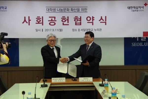 우제창 총장은 “서일대는 이미 해외봉사 및 지역봉사 그리고 헌혈행사 참여 등으로 실천하고 나누는 봉사활동을 진행하고 있었으나 이번 체결을 계기로 그 뜻을 더욱 의미있게 만들었다”고 말했다.
