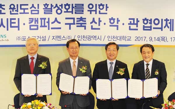 인천대는 14일 '인천대-인천시-지멘스-포스코건설'의 4자 협력에 대한 업무협약을 체결했다.