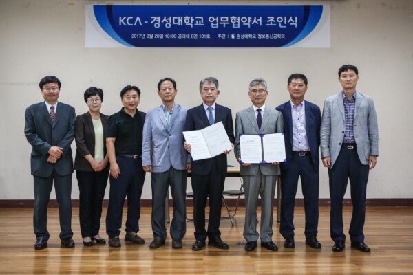 [대학저널 박용우 기자] 경성대학교(총장 송수건) 공과대학(학장 윤종태)과 한국방송통신전파진흥원 부산본부(본부장 변영범, 이하KCA)은 9월 20일 경성대학교 8호관 101호에서 산학협력을 위한 MOU를 체결했다.