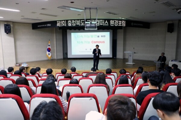충청북도그린캠퍼스협의회, 충청북도지속가능발전협의회 및 환국환경공단이 공동 주최한 이번 환경포럼은 민·관·학의 협력체계를 구축해 충청북도의 친환경생활을 확산하고 정착하는 데 목적을 두고 있다. 특히 앞으로 친환경사회를 이끌어갈 대학생들에게 저탄소 친환경사회인의 자질 함양에 도움을 주고자 마련됐다.