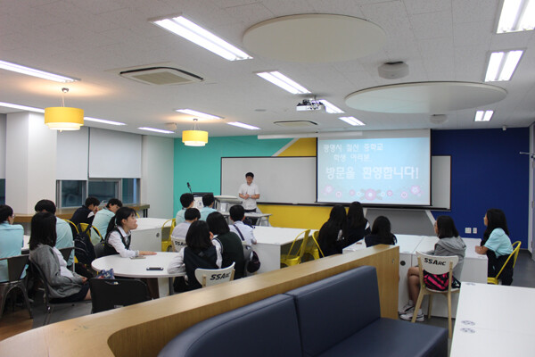 이 날 프로그램은 MOU 협약 기관인 광명시 진로직업체험지원센터와의 업무 협조를 통해 이루어진 것으로, 광명시 철산중학교 학생 20명과 지도교사 등이 학과 체험 프로그램에 참여했다.