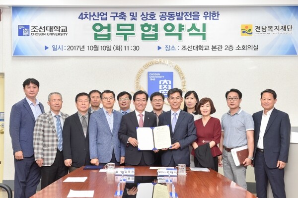 [대학저널 박용우 기자] 조선대학교(강동완 총장)는 10일 오전 11시 30분 조선대 본관 2층 소회의실에서 전남복지재단(대표이사 곽대석)과 상호 교류협력을 통한 공동발전을 위해 업무협약을 체결했다.
