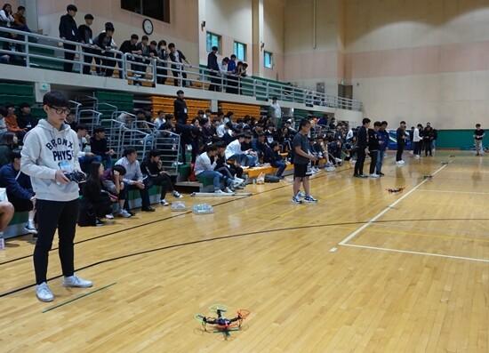 전공체험에 이어 열린 과학경진대회에선 학생들이 직접 제작한 드론 비행 및 착지, 장애물 넘기 등의 경기가 진행됐다. 대회 결과 창의설계 부문은 아디오스팀(팀장 한도경, 사곡고 2학년), 장애물설계 부문은 Drone One팀(팀장 김민서, 선산고 1학년), 베스트스피드 부문은 성수국팀(팀장 양재성, 사곡고 2학년)이 최우수상의 영예를 안았다.