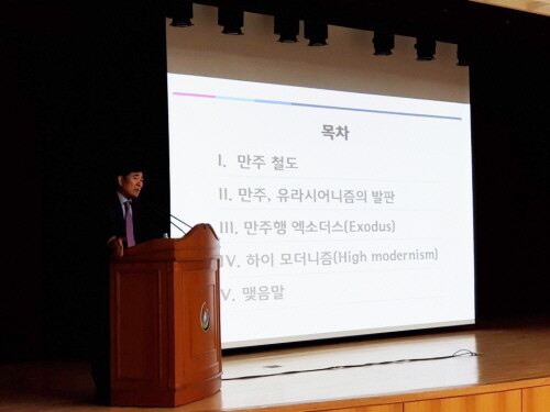 [대학저널 임지연 기자] 한석정 동아대학교 총장이 지난 18일 부산상수도사업본부 대회의실에서 부산발전연구원 초청 특강을 했다. 한 총장은 100여 명이 참석한 이날 특강에서 저서 '만주 모던 : 60년대 한국 개발 체제의 기원' 내용을 바탕으로 1930년대 만주와 1960년대 한국, 부산을 넘나들며 한국 재건체제 형성과 역사적 뿌리를 살펴보고 만주가 한국의 근대화에 준 영향 등을 설명해 호응을 얻었다.