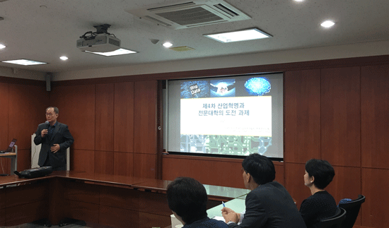 이번 특강에서는 4차 산업혁명시대 도래에 따라 혁신적 기술 트렌드와 직업 변화에 따른 전문대학의 전략방안 등을 제시했다. 참석자들은 4차 산업혁명과 전문대학의 교육과정을 어떻게 접목할 것에 대해 열띤 토론을 펼쳤다.