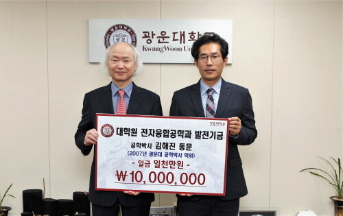 [대학저널 임지연 기자] 국가핵융합연구소 김해진(전자통신공학과 93학번) 박사가 모교인 광운대에 발전기금 1000만 원을 기부했다.