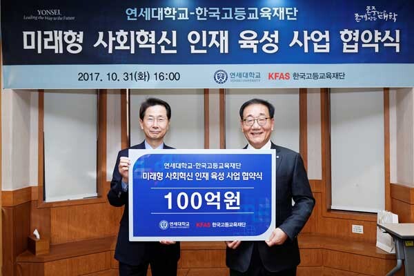 양측은 지난 10월 31일 ‘연세대-한국고등교육재단 미래형 사회혁신 인재 육성 사업’ 협약을 맺었다.
