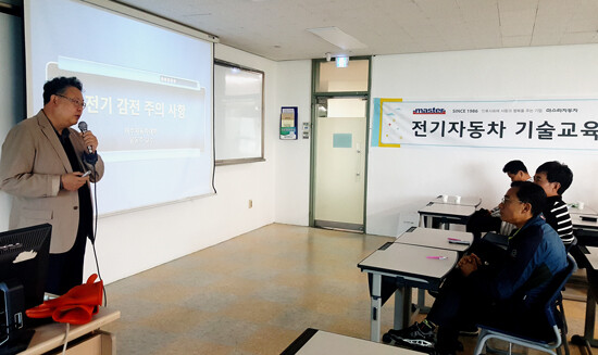 교육을 담당한 유동주 교수는 마스타자동차관리 임직원들에게 "고전압 배터리를 장착하고 있는 전기자동차의 시스템에 대해 바르게 이해하고, 정비기술자의 안전을 위해 고전압 전기장치를 안전하게 차단할 수 있어야 한다"며 고전압 안전 보호 장비들을 우선적으로 갖춰줄 것을 당부했다.