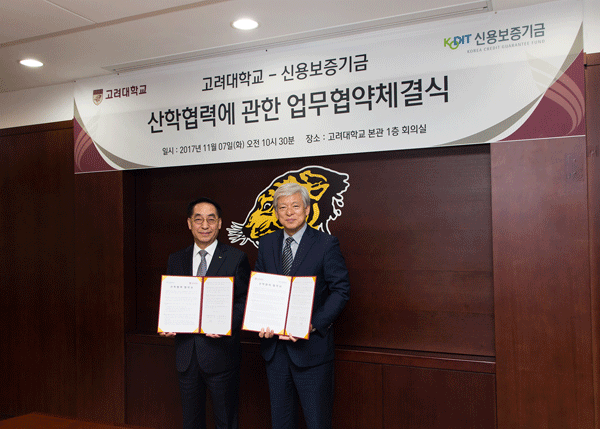 고려대는 지난 7일 고려대 본관에서 창업기업 육성기관인 신용보증기금과 산학협력 강화에 대한 양해각서(MOU)를 체결했다.