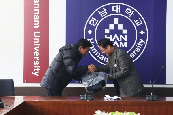 [대학저널 박용우 기자]한남대 이덕훈 총장이 해외출장 시 일반석(이코노미석)을 이용해 절감한 비용으로 경비 근무자에게 방한복을 선물해 훈훈함을 주고 있다.