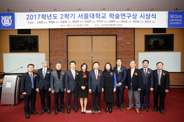 [대학저널 신효송 기자] 서울대학교(총장 성낙인)가 ‘2017학년도 2학기 서울대학교 학술연구상’ 수상자 10인을 발표했다. 시상식은 20일 서울대 교수학습개발센터 320호에서 열렸다.