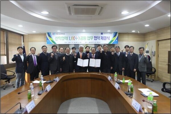 [대학저널 박용우 기자]국립 안동대학교(총장 권태환)와 안동상공회의소(회장 이경원)가 28일 대학 본관 대회의실에서 사회맞춤형 산학협력 선도대학(LINC+) 육성사업 상호업무협약을 체결했다.