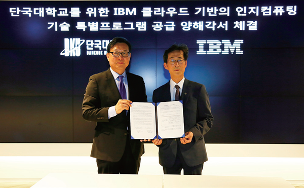단국대는 2016년부터 인공지능캠퍼스 구축을 위한 준비를 해나갔다. 그 첫 단추는 ‘인지 컴퓨팅 기술 도입’이다. 단국대는 2016년 5월 한국IBM과 MOU를 맺고 인지 컴퓨팅을 활용한 교과과정 및 학사 시스템의 혁신에 나섰다.