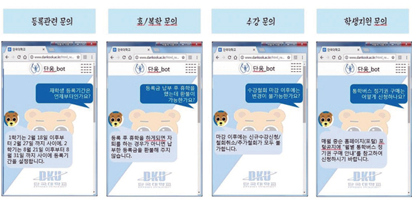 단국대는 인지 컴퓨팅 기술을 기초적인 학사정보 문답 및 처리 서비스에 적용하고 점차 인공지능의 학습능력을 심화시켜 전공별 강의과목 정보, 학생 개인별로 수강과목 설계부터 취업 및 적성 진로지도를 지원하기로 했다.