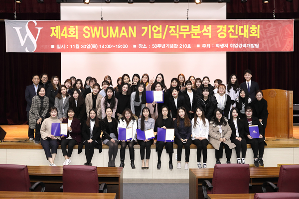 [대학저널 신효송 기자] 서울여자대학교(총장 전혜정)가 지난 11월 30일 서울여대 50주년기념관 국제회의실에서 ‘제4회 SWUMAN 기업/직무분석 경진대회 최종발표회’를 개최했다.