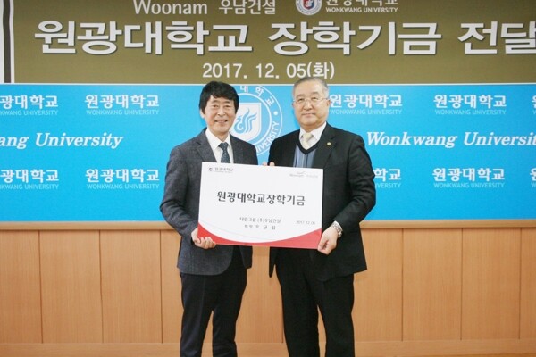 [대학저널 박용우 기자](주)우남건설(대표 추연철)이 원광대학교(총장 김도종)에 장학기금으로 1억 5천만원을 기탁했다.