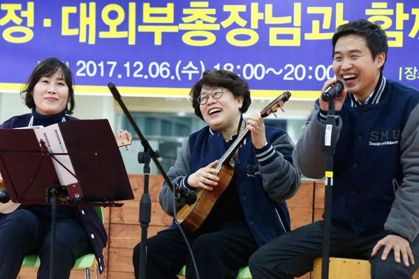 특히 김종희 행정대외부총장은 학생들을 위한 축하공연으로 직접 우크렐레 연주를 준비해 참여한 학생들의 화합의 분위기를 고조시켰다.