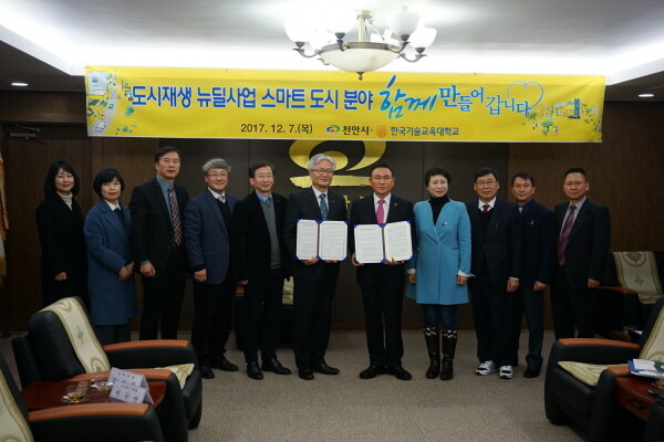 [대학저널 임지연 기자] 코리아텍(한국기술교육대학교, 총장 김기영)이 7일 천안시청에서 천안시(시장 구본영)와 ‘도시재생 뉴딜사업’ 스마트 도시 분야에 지속적으로 협력한다는 내용의 업무협약을 체결했다.