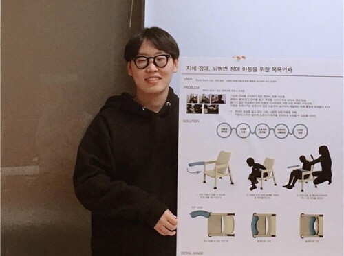 이창민 씨가 공모전에 출품한 작품은 ‘지체 장애 및 뇌병면 장애 아동을 위한 목욕의자’이다. 이 작품은 편마비 증상이 있는 장애 아동과 보호자 모두 편리하게 목욕활동을 할 수 있도록 돕는다.