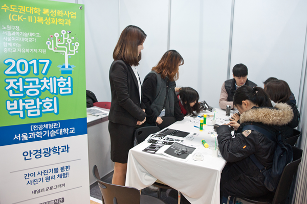 특히 전공체험관에는 서울과기대, 서울여대의 14개 특성화 학과를 체험할 수 있는 프로그램을 마련됐다. 중학생 눈높이에 맞춘 진로 진학 정보를 제공해 큰 호응을 얻었다.