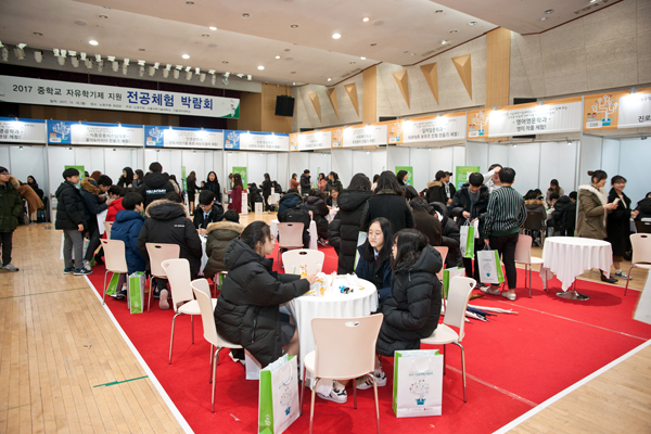 이날 행사가 열린 노원구청 대강당에는 전공체험관, 진로심리세계관 등의 부스가 설치됐다. 교육부 자유학기제 지원 사이트 ‘꿈길’(www.ggoomgil.go.kr)을 통해 사전참가 신청을 받은 학생을 비롯, 당일 현장을 찾은 학생, 교사, 학부모 등 400여 명의 발길이 이어졌다.