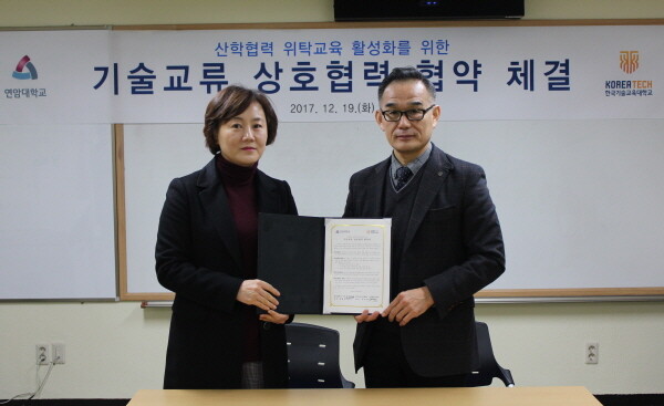 [대학저널 임지연 기자] 코리아텍(한국기술교육대학교, 총장 김기영) 능력개발교육원(원장 윤관식)이 지난 19일 연암대에서 연암대 부설 평생교육원(원장 황혜정)과 산학협력 위탁교육 활성화를 위한 업무협약을 체결했다.