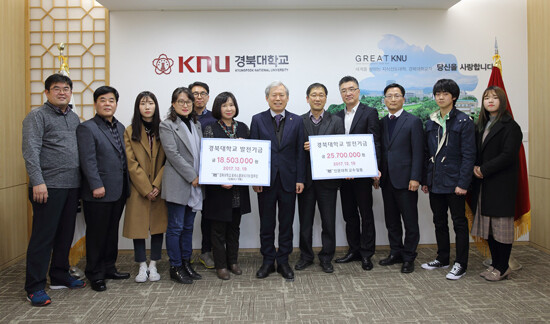 경북대 클래식기타 합주동아리 '토레스' OB회 및 YB회에서 1850만 3000원, 경북대 인문대학 주보돈 교수 등 9명이 2570만 원, 경북대 불어불문학과 동문인 계명대 정치외교학과 이승근 교수가 1000만 원 등 총 5420만 3000원을 인문한국진흥관 건립을 위해 써달라며 지난 19일 경북대에 전달했다. 이에 앞서 지난 18일에는 '토레스' OB회원이자 전자공학부 동문인 하이브레인넷 우용태 대표가 1000만 원을 인문한국진흥관 건립기금으로 전달하기도 했다.