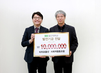 교육부가 ‘대학주도 방과후학교 사회적기업’으로 선정함으로써 지난 2013년 사업을 시작한 ‘티치포울산(Teach For Ulsan) 사회적협동조합(이사장 이상도)’이 교육 공간 제공과 진로지도 프로그램 지원 등으로 성장을 도와준 울산대(총장 오연천)에 28일 100만 원을 시작으로 10년 간 인재양성 발전기금 1000만 원을 기부하기로 했다.