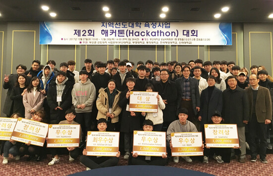 [대학저널 유제민 기자] 부산대학교(총장 전호환) 상남국제회관에서 '4차 산업혁명과 해양과학기술의 만남'을 주제로 '제2회 해커톤대회'가 개최, 총 2050만 원의 상금을 놓고 치열한 레이스가 펼쳐졌다. 이 대회는 지난 27일부터 28일까지 무박 2일동안 진행됐으며 지역선도대학 육성사업 부산권선도대학사업본부(본부장 김석수 부산대 기획처장)가 주관했다.