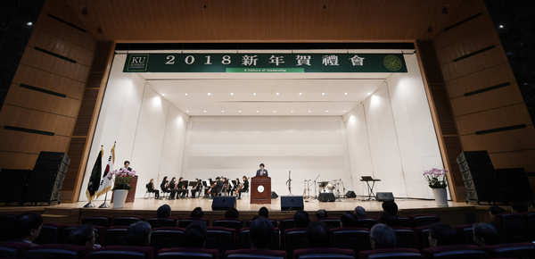 [대학저널 신효송 기자] 건국대학교(총장 민상기)가 2일 건국대 새천년관 대공연장에서 2018년 신년하례회를 열고 국내를 넘어 세계 최고 명문사학을 향한 도전과 혁심을 다짐했다.