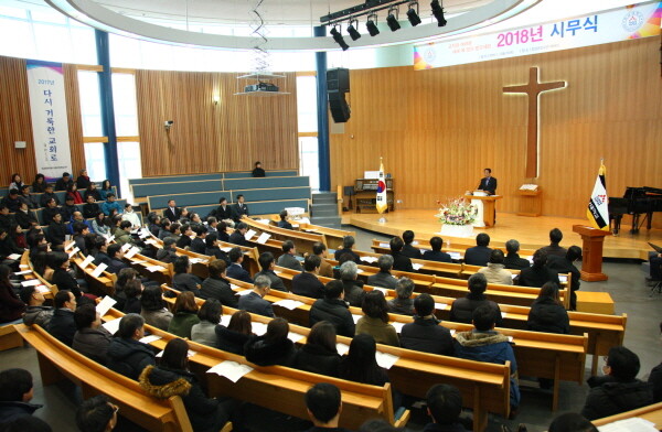 [대학저널 임지연 기자] 한남대학교(총장 이덕훈)가 2일 한남대 정성균선교관에서 교수와 직원 등 250여 명이 참석한 가운데 ‘2018년 시무식’을 진행했다.